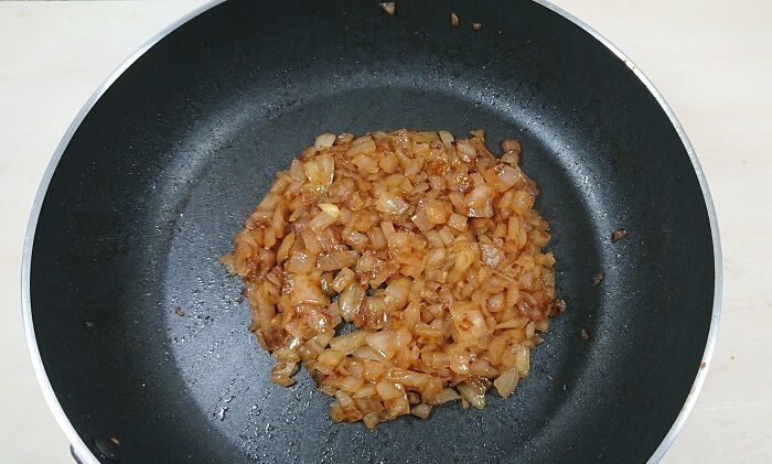 - 玉ねぎを茶色になるまで炒める。