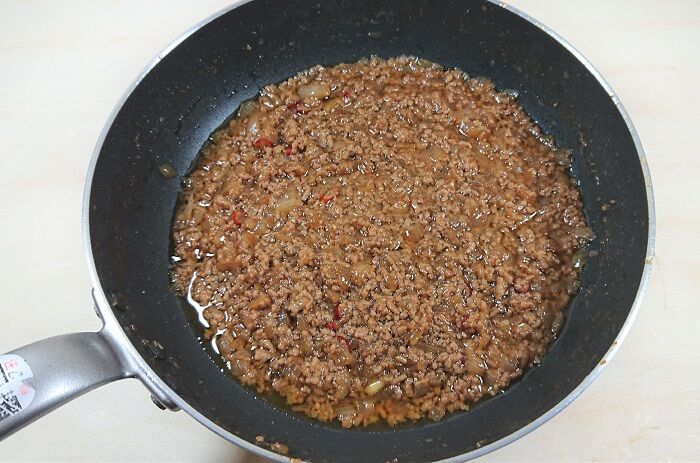 - ひき肉を合わせて炒める。