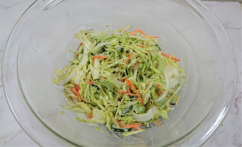 コールスローサラダがおいしそうにお皿に載っているのを拝見しまして、