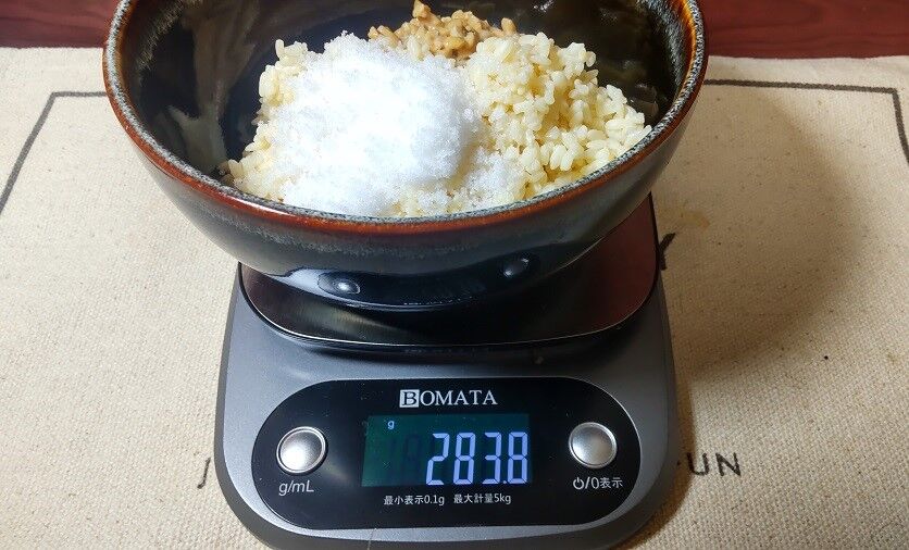 塩分濃度を8%にするための塩23gを入れます。