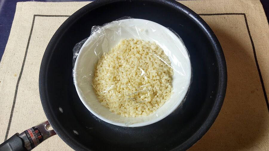 米粒が指でつぶれる程度に柔らかくなったら準備完了です。