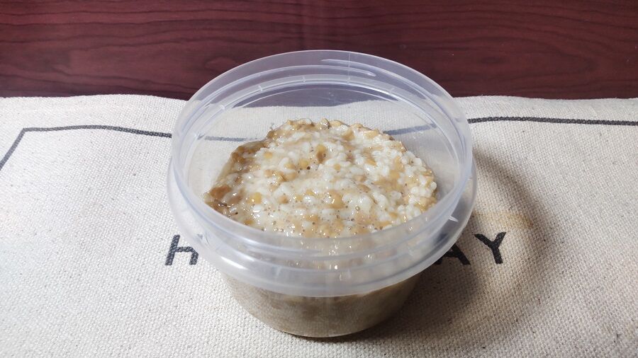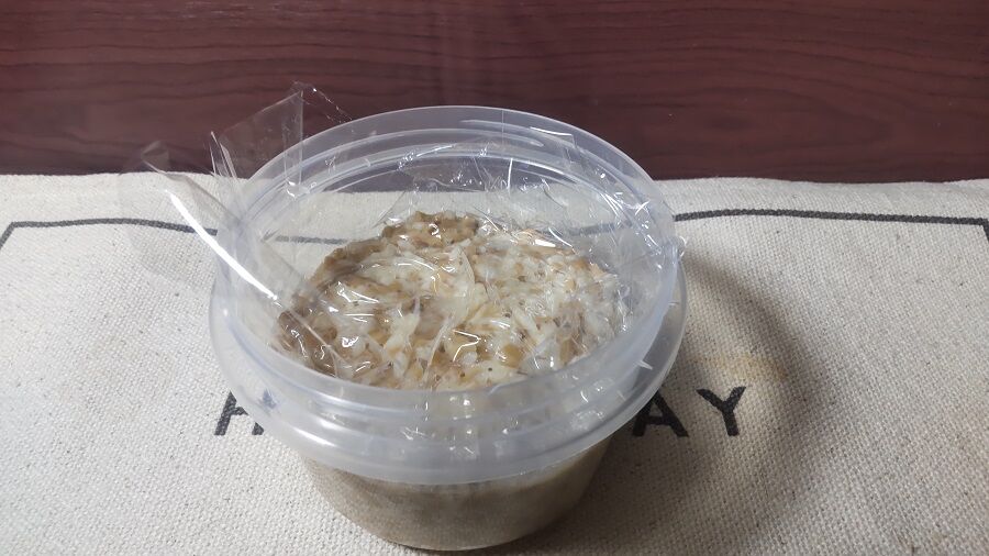 ひきわり納豆130gをよくといで容器に入れます。